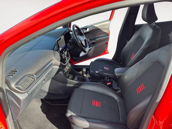 Finished in Race Red Paint-This 2020 Ford Fiesta ST-Line X Edition boasts a clear vehicle history, offering you peace of mind. This stylish hatchback is powered by an efficient 1.0L petrol engine, meeting Euro 6 emission standards. Inside, you'll find a host of desirable features, including the NCAP Pack with automatic headlights, a premium B and O PLAY sound system integrated with Ford SYNC 3 navigation, and seamless connectivity with Android Auto and Apple CarPlay. Parking is made easier with rear parking distance sensors, and you can keep your devices powered up with wireless charging. The electronic automatic air conditioning ensures a comfortable cabin temperature.Experience impressive performance with this Fiesta, accelerating from 0 to 62mph in just 8.9 seconds. Its fuel economy is a standout feature, achieving a remarkable 52 miles per gallon, which indicates it is more economical than many similar vehicles. Furthermore, its low CO2 emissions highlight its environmental consideration, making it a sensible choice for today's driver.