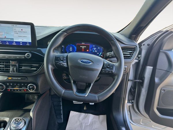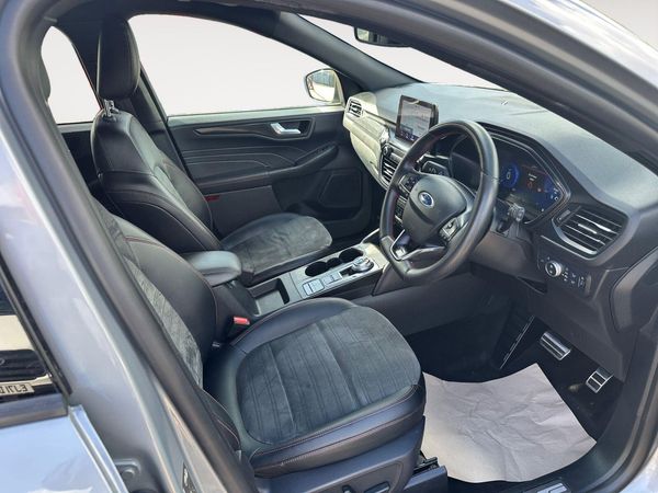 This 2022 Ford Kuga ST-Line X Edition is a superb example, having had only one owner since new. This stylish SUV boasts a 2.5 litre petrol hybrid engine, meeting Euro 6 emissions standards. It comes equipped with a desirable Winter Pack, ensuring comfort with a heated steering wheel and heated rear seats. The ST-Line X Edition trim also features automatic headlights with auto high-low beam and full LED headlamps for enhanced visibility.You will appreciate the impressive fuel economy of 51 miles per gallon, which is excellent for a vehicle of this type, and its brisk acceleration reaching 0-62mph in just 9.1 seconds. These figures demonstrate how this Kuga offers a compelling blend of efficiency and performance compared to other similar vehicles. Furthermore, its low insurance group rating makes it an economical choice for many drivers.