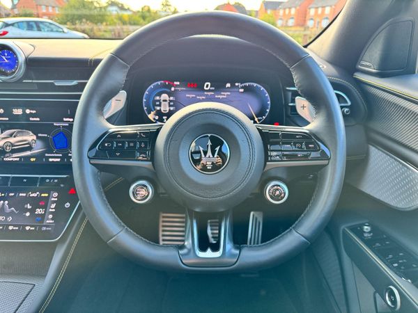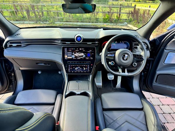 PLEASE CALL TO VIEW -This 2023 Maserati Grecale V6 Trofeo presents an exceptional opportunity to own a performance focused SUV. As a Euro 6 compliant model, this four wheel drive Grecale boasts a potent 3.0 litre petrol engine, delivering exhilarating performance with a 0-62mph acceleration time of just 3.8 seconds. The Trofeo trim level ensures a premium experience, enhanced by a sophisticated Head Up Display and a large 12.3 inch HD touchscreen central display. This system integrates the Maserati Intelligent Assistant, satellite navigation, and seamless connectivity with Android Auto and Apple CarPlay, alongside Bluetooth functionality. For enhanced visibility and safety, it features Full LED headlights with LED daytime running lights and a convenient dusk sensor for automatic headlight activation.Further demonstrating its advanced capabilities, this Maserati Grecale is equipped with front and rear parking sensors, complemented by rear active braking to assist with manoeuvring. The generous boot space offers ample practicality for everyday needs and longer journeys. With a towing weight capacity of 2500 kg, this Grecale is also well suited for those requiring towing capabilities. These features collectively highlight how this particular Maserati Grecale V6 Trofeo offers a superior blend of performance, technology, and utility compared to other vehicles in its class.