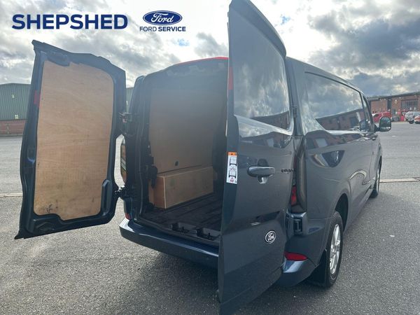 Finished in Metallic Chrome Blue Paint-This 2024 Ford Transit Custom offers exceptional value with its remarkably low mileage of just 16,000 miles, having been owned by only one person. This 2.0 300 EcoBlue Limited Auto L2 H1 Euro 6 (s/s) 5dr model, a 300 Limited variant with the desirable Limited trim, is powered by an efficient 2.0 litre diesel engine producing 134 bhp and meets Euro 6 emission standards. It comes equipped with a host of practical features including keyless entry, a reversing camera pack with front and rear parking sensors, and fixed DSS LED headlamps with automatic high beam functionality.Further enhancing its appeal, this Transit Custom includes a comfort dual passenger seat pack with heated seats and automatic air conditioning for a pleasant driving experience. With a generous cargo volume of 6800 litres, this vehicle is well suited for a variety of professional needs. The combination of its low mileage, single owner history, and comprehensive feature set makes this Ford Transit Custom a standout choice compared to other vehicles of its kind.